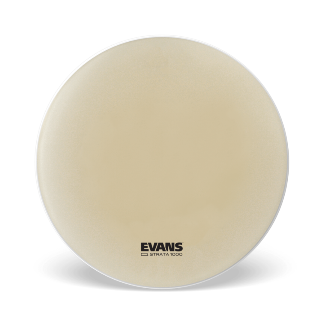 Los parches de bombo EVANS Strata 1000 Concert cuentan con una sola capa de película de 10mil con un revestimiento único de Strata que simula el sonido cálido y la sensación de la piel de becerro tradicional.