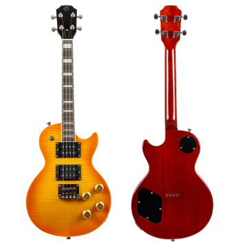 ・4ta cuerda: 0.026 pulgadas - Caracteristicas premium: Ukelele tenor, ukelele electrico, cuerdas de metal, cuerpo solido, single cutaway, tapa delantera barnizada vintage burst flame maple, cuerpo y mastil de caoba, clavijero negro barnizado, diapson ligado, cejuela de hueso, traste cero, marcadores de posicion en linea, marcadores de posicion laterales, clavijas de engranaje cerradas, binding de ABS, perillas retro, piezas humbucker en duo en configuracion HH, dos controles de volumen, dos controles de tono, interruptor de tres cambios, puente tipo hardtail.