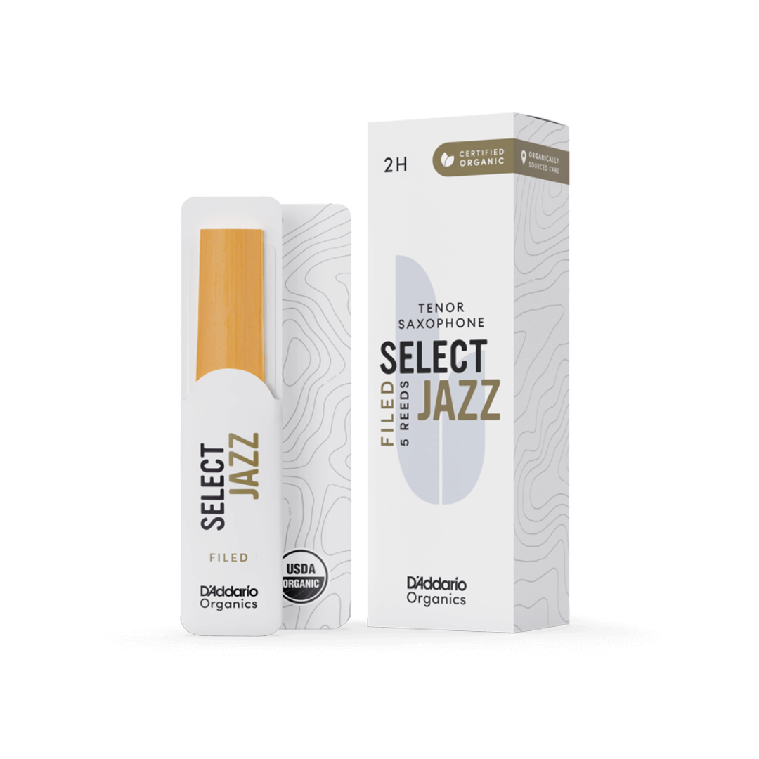 Organic Select Jazz ofrece una gran proyección, claridad y un sonido vibrante. Select Jazz se vende en terceras concentraciones para un emparejamiento óptimo de la boquilla. Cada caña del paquete viene sellada en un soporte de caña de papel reciclable y envoltura de flujo.