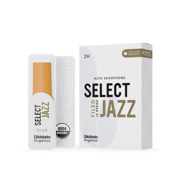 Organic Select Jazz ofrece una gran proyección, claridad y un sonido vibrante. Select Jazz se vende en terceras concentraciones para un emparejamiento óptimo de la boquilla. Cada caña del paquete viene sellada en un soporte de caña de papel reciclable y envoltura de flujo.