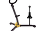 El DS533BB de soporte múltiple para saxofón HERCULES cuenta con un yugo plegable, un respaldo ajustable y pasadores de bloqueo que sujetan de forma segura un saxofón tenor o alto; incluye una clavija adicional para un saxofón soprano. Bolsa de almacenamiento incluida. La bolsa de almacenamiento está construida con materiales respetuosos con el medio ambiente. Las telas no tejidas utilizadas son reciclables, lo que ayuda a conservar los recursos naturales.